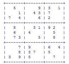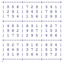 我们从这个数独网站来找一个数独题目,首先要将数独图转为一个文本文件。题目和转化后的形式如下: