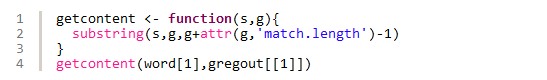 更利便的利用方法是按照上述要领成立一个自界说函数getcontent,参数s暗示待处理惩罚的文本,参数g暗示的是通过gregexpr函数处理惩罚后的功效。这个函数我们在后头还会用到。