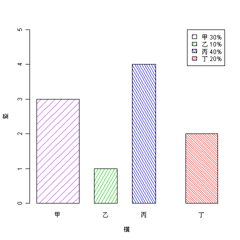 names <- c(“甲”,”乙”,”丙”,”丁”)