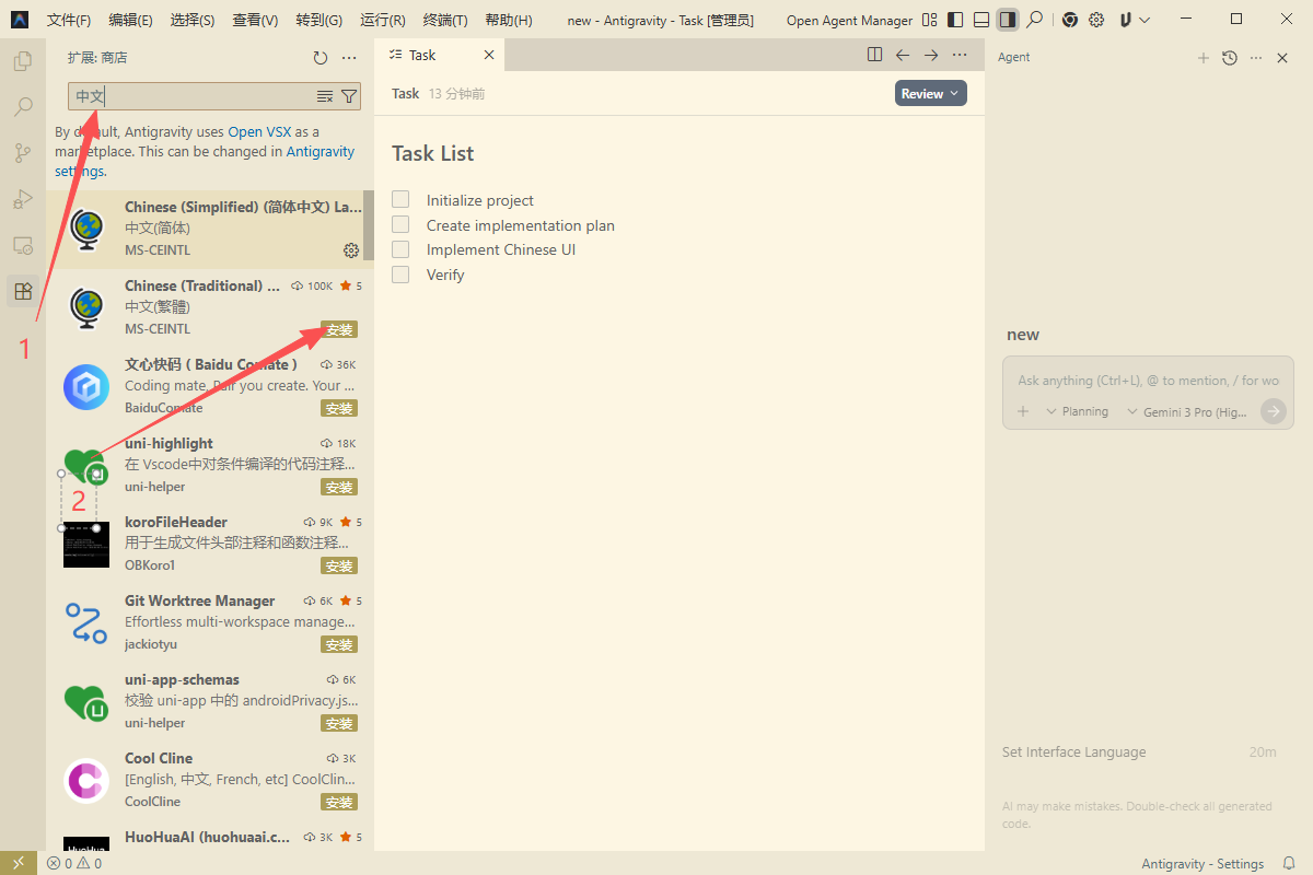 AntiGravity设置中文界面的方法繁体或者简体-超简单教程