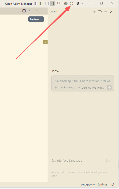 AntiGravity最近挺火的,我也是看到各个媒体在报道,还有短视频tiktok等等,今天就教你用三分钟如何让AntiGravity变成中文的界面,废话不多少,开干!
