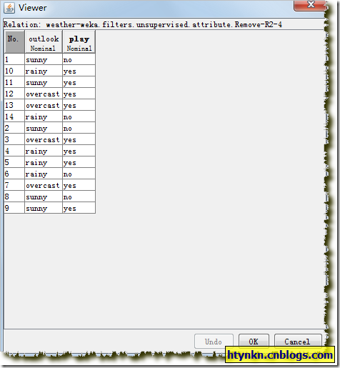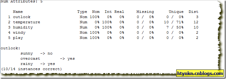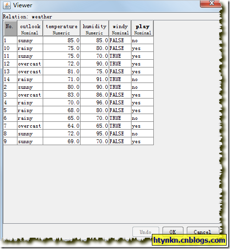 一个简朴的例子,数据利用weka自带的weather数据集。