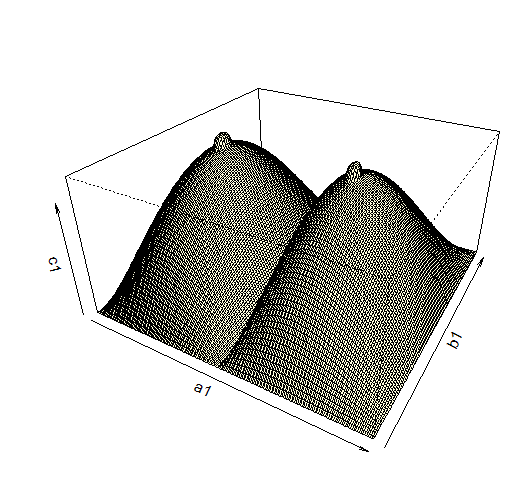 persp(a1,b1,c1,theta=30,phi=30,expand=0.5,col=”lightyellow”)